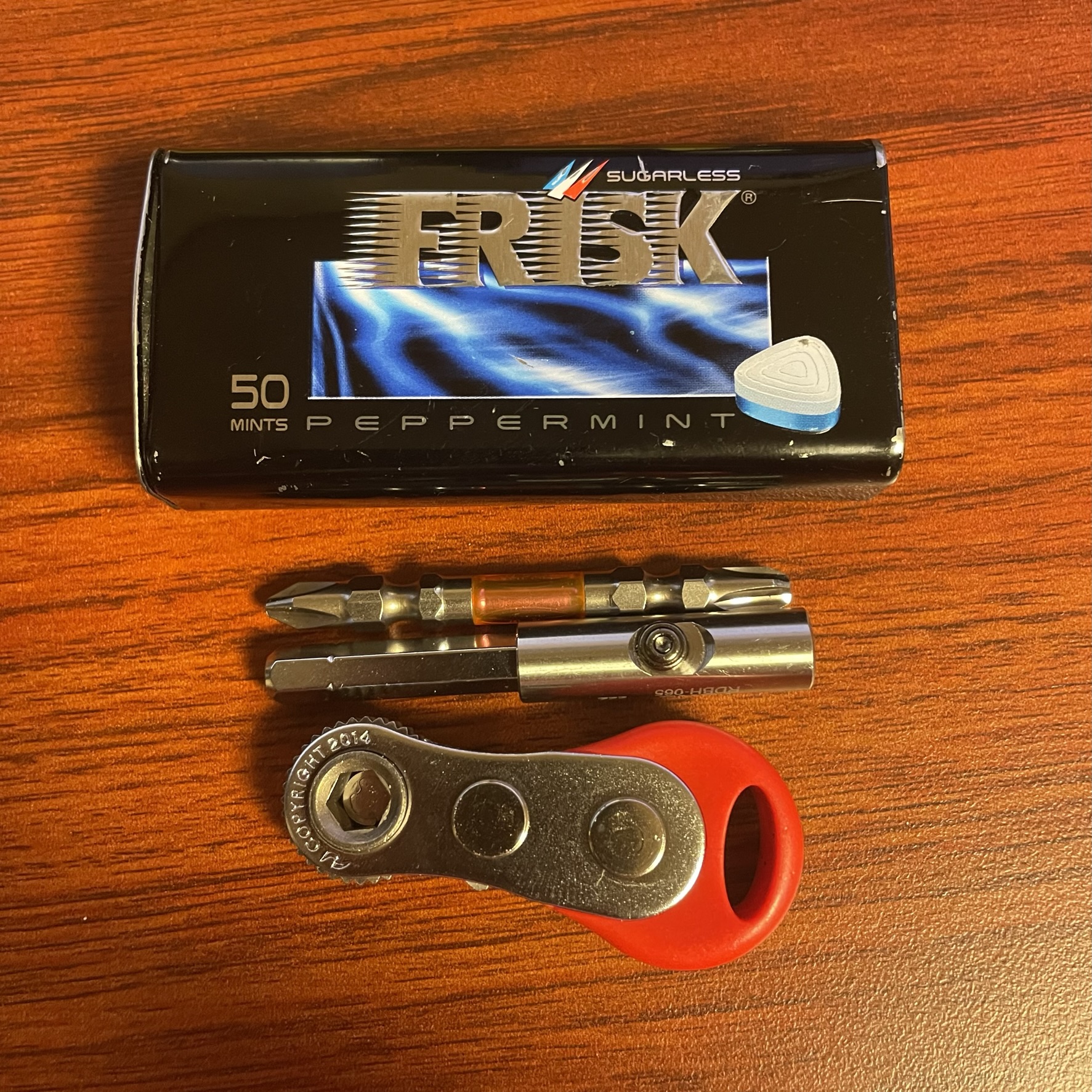 雪山で急遽ビンディング周りのネジを締めたい時、ポケットにこれを入れておけば、ささっと締められます!