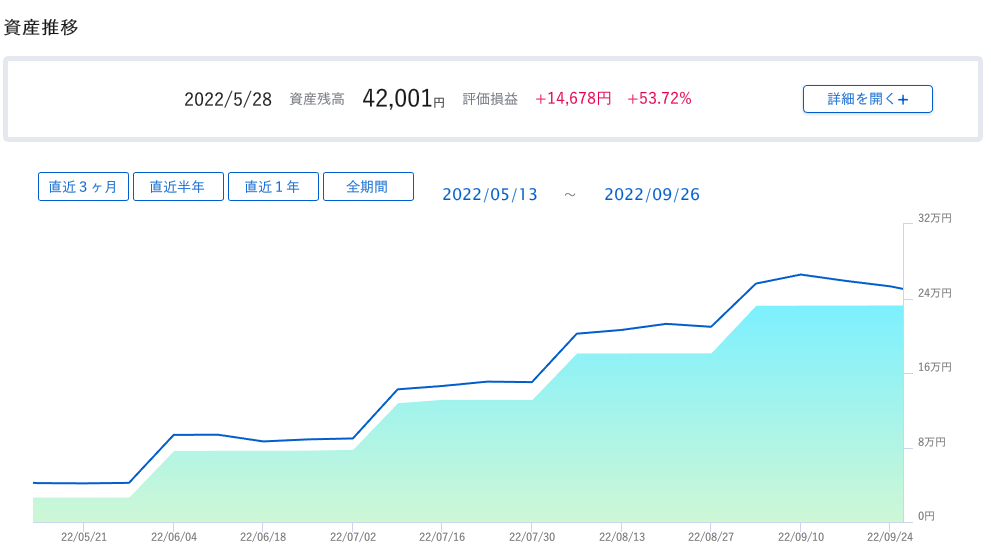 メインは楽天証券ですが、こちらのSBI証券の成績がこちら