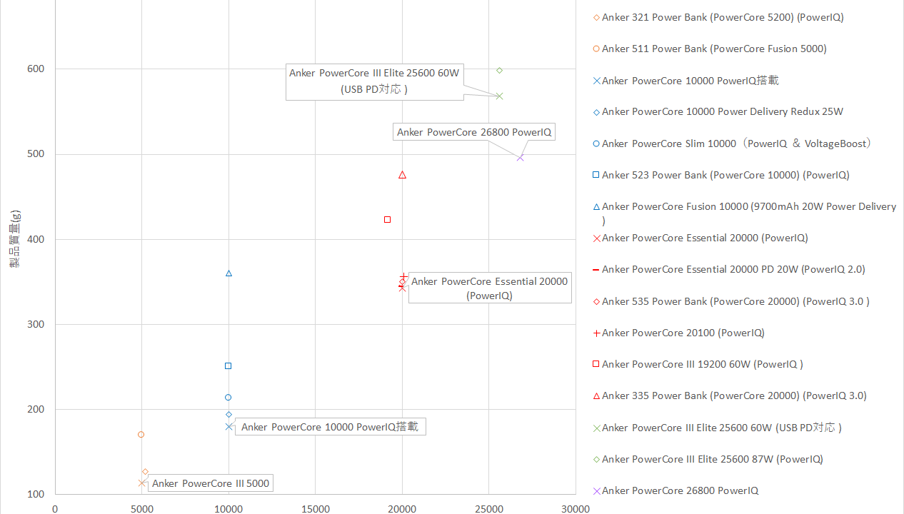 - 568 g : Anker PowerCore III Elite 25600 60W (USB PD対応 )