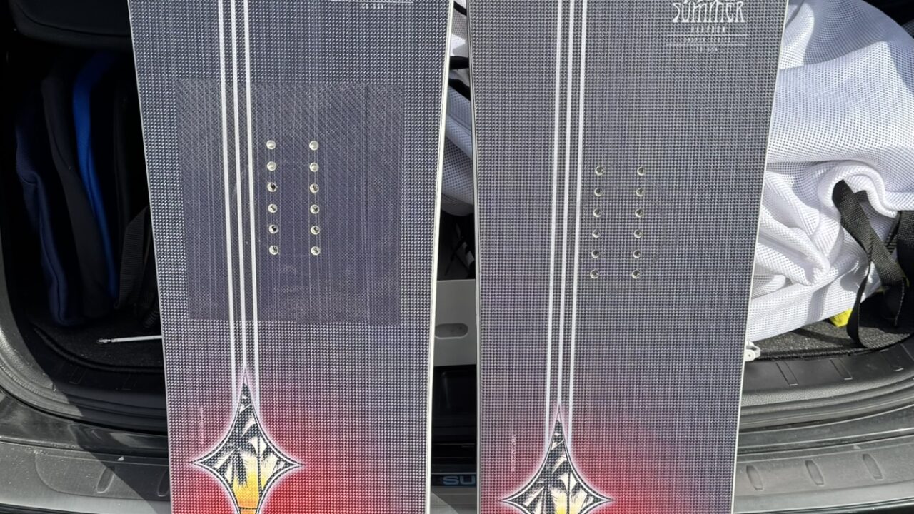 パウダーから地形とアイスバーンでもカービングが可能なネバーサマーの板。