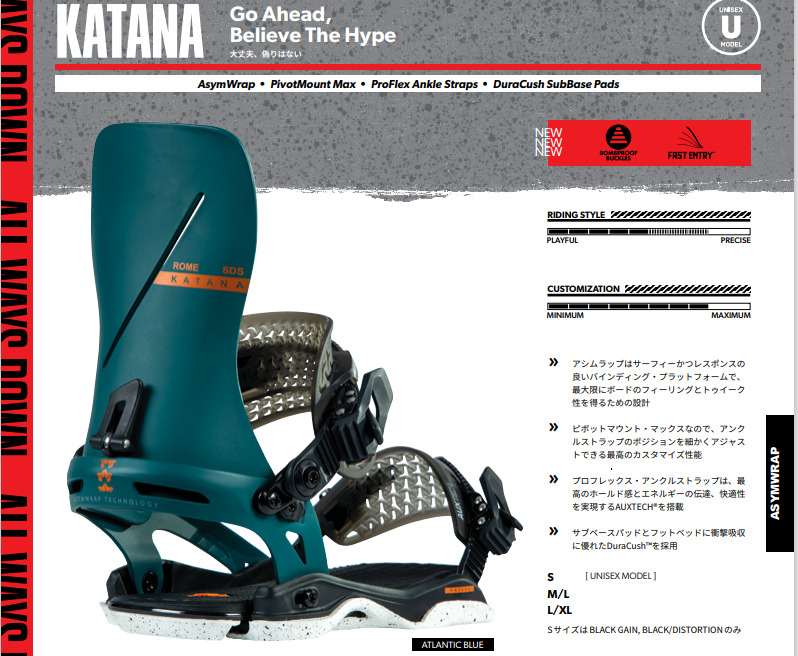 ROME KATANAビンディングには、他のビンディングにはある強みの良い所取りしてます。
