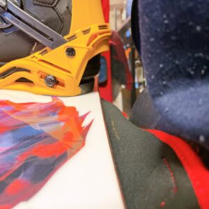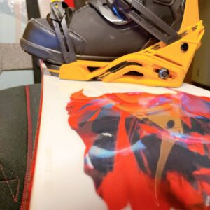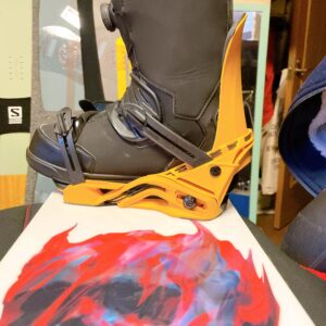 SサイズのSALOMONビンディングとBURTONのブーツだとピッタリかと思ったのですが、かなりギリギリです。