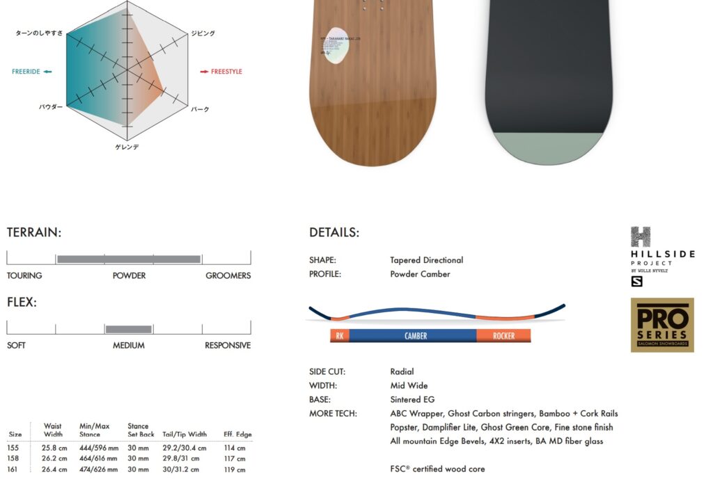 - 大人な板 ⇒だからって大人しく滑らずパウダーで暴れられる板