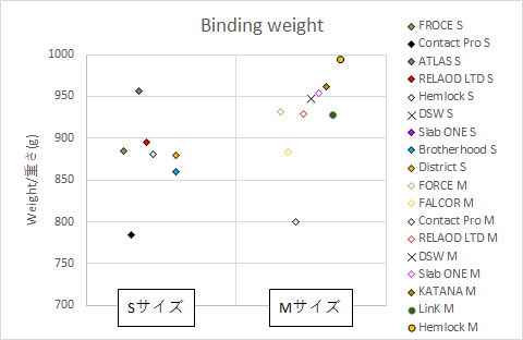 買ったことのあるビンディングの板の重さは幾らなのか?を調べてみたくなったので